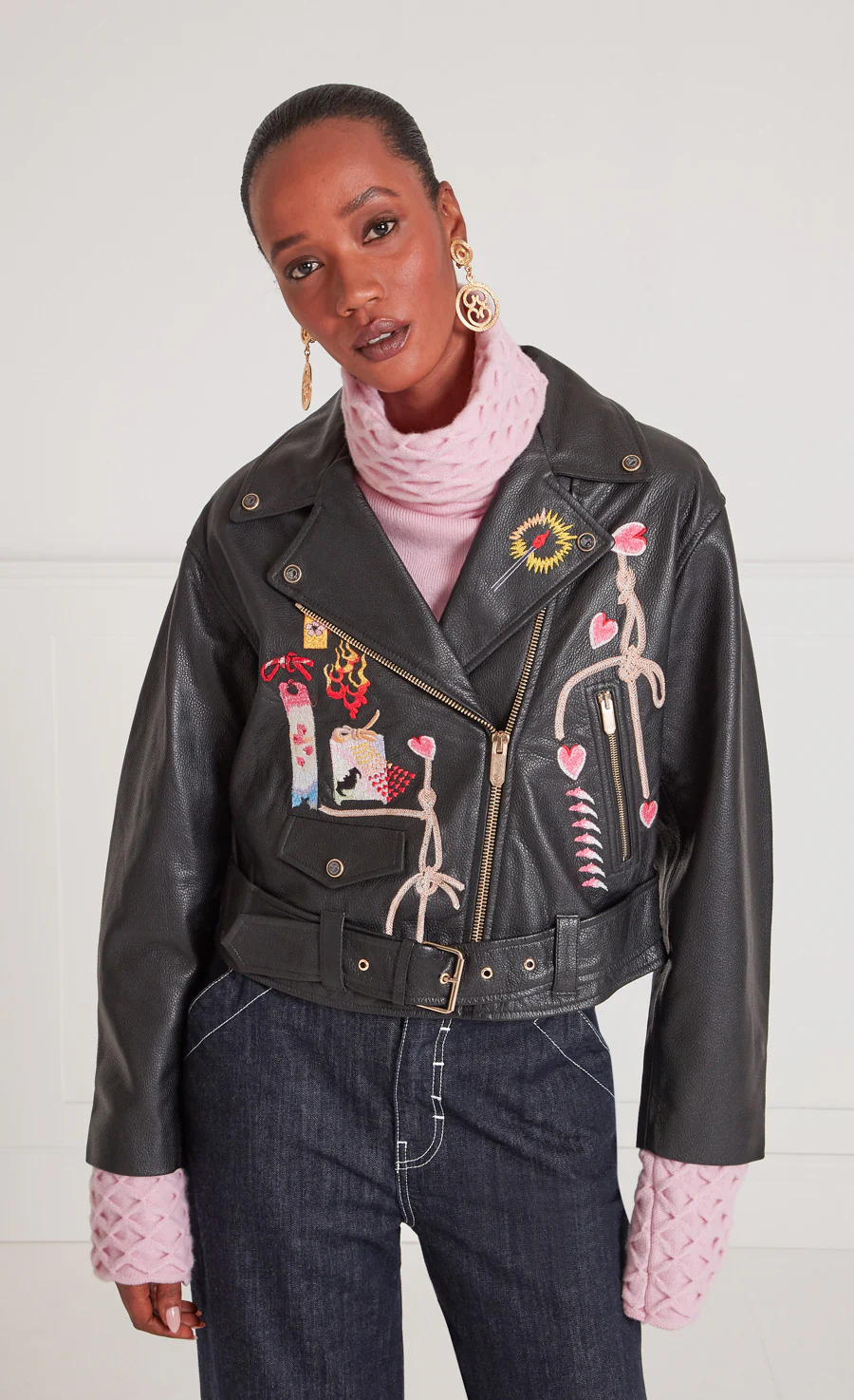 A statement take on a classic style, the Kyoto Leather Jacket takes inspiration from Japanese biker gangs. Crafted from 100% leather and fully lined, this tough-luxe jacket is embroidered with petals, knots and painted swing tags - classic Temperley whimsy. This staple pairs beautifully with layered over dresses, or worn casually with jeans and T-shirt.