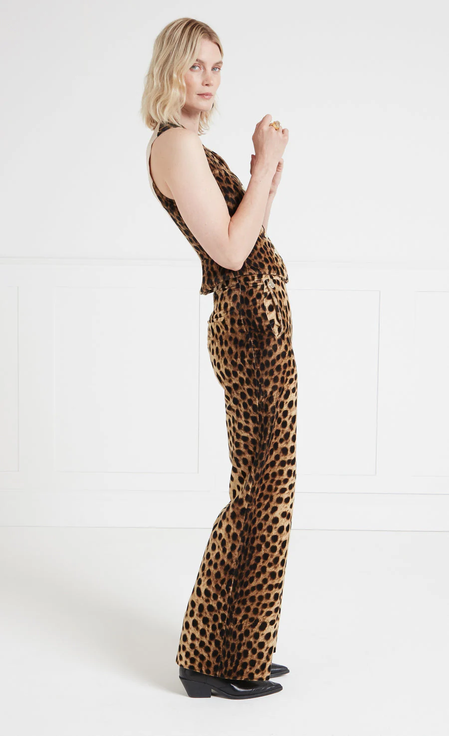 The Nemera tailoring is a limited edition iteration of the iconic three-piece Clove suit — made from Italian printed leopard velvet. An effortless blend of masculine tailoring and a fitted feminine silhouette, with warm leopard tones — as versatile as a neutral and a true brand signature. A modern take on quintessentially British styling, exemplifying Alice’s playful and fluid attitude to conventions.